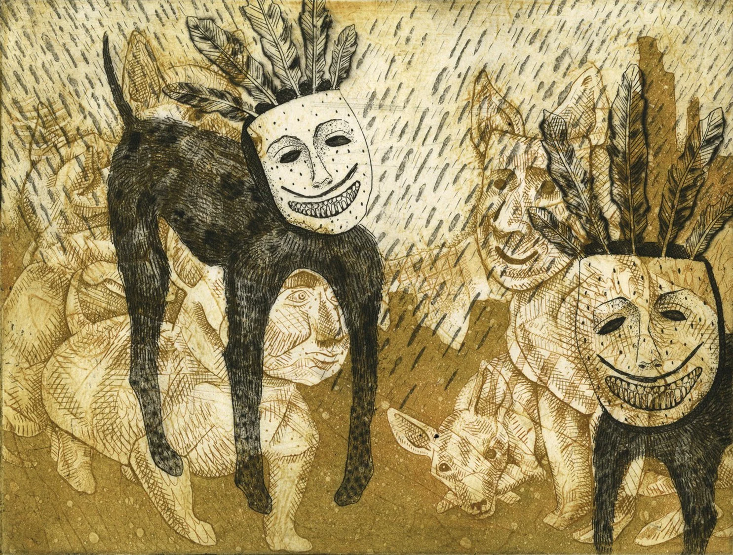 Spirit Dogs, 2 Copper Plate Color Etching on BFK Rives, 2012