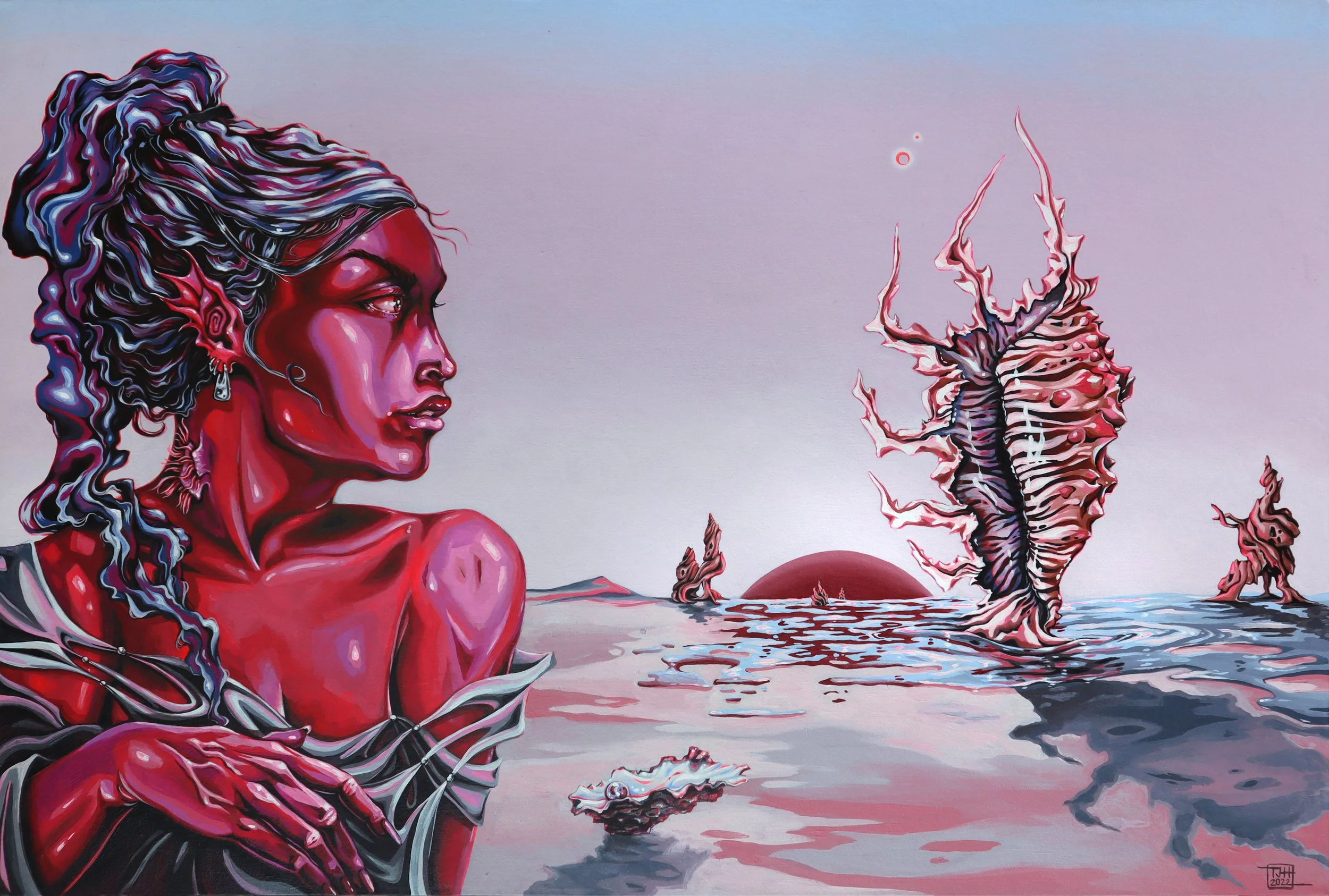 Amphritrite & Haematite, Acrylic on Japanese Paper, 20 X 30”, 2021